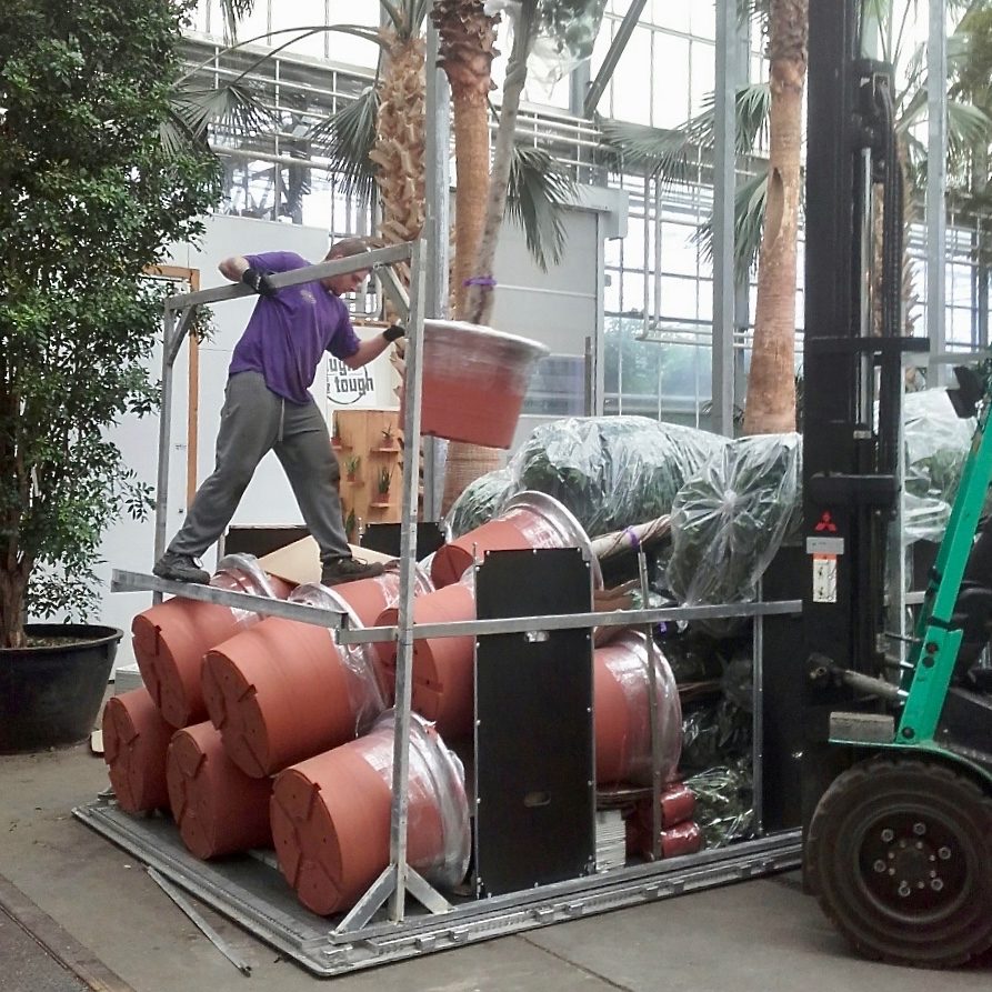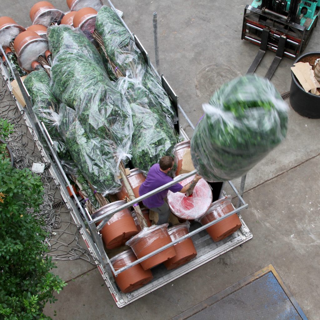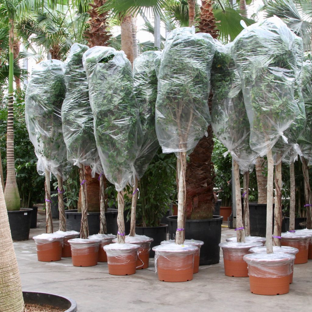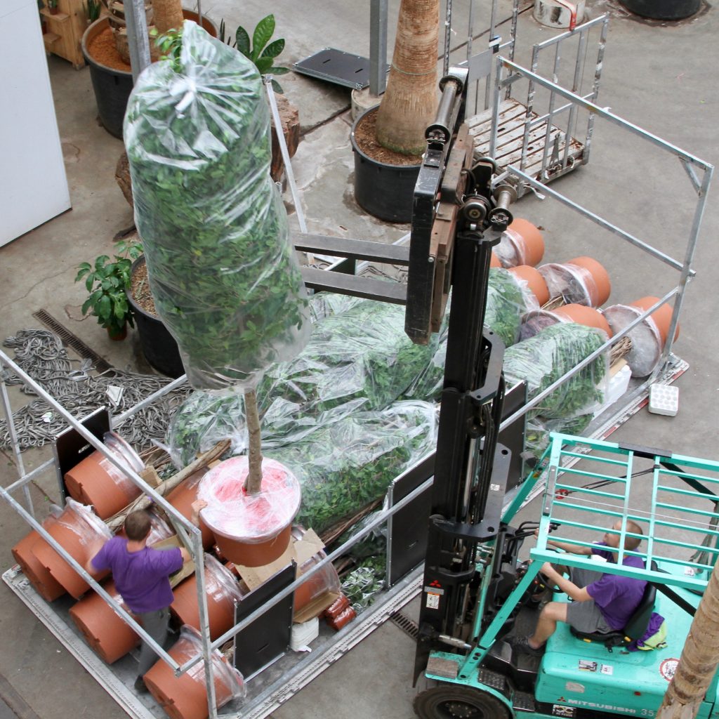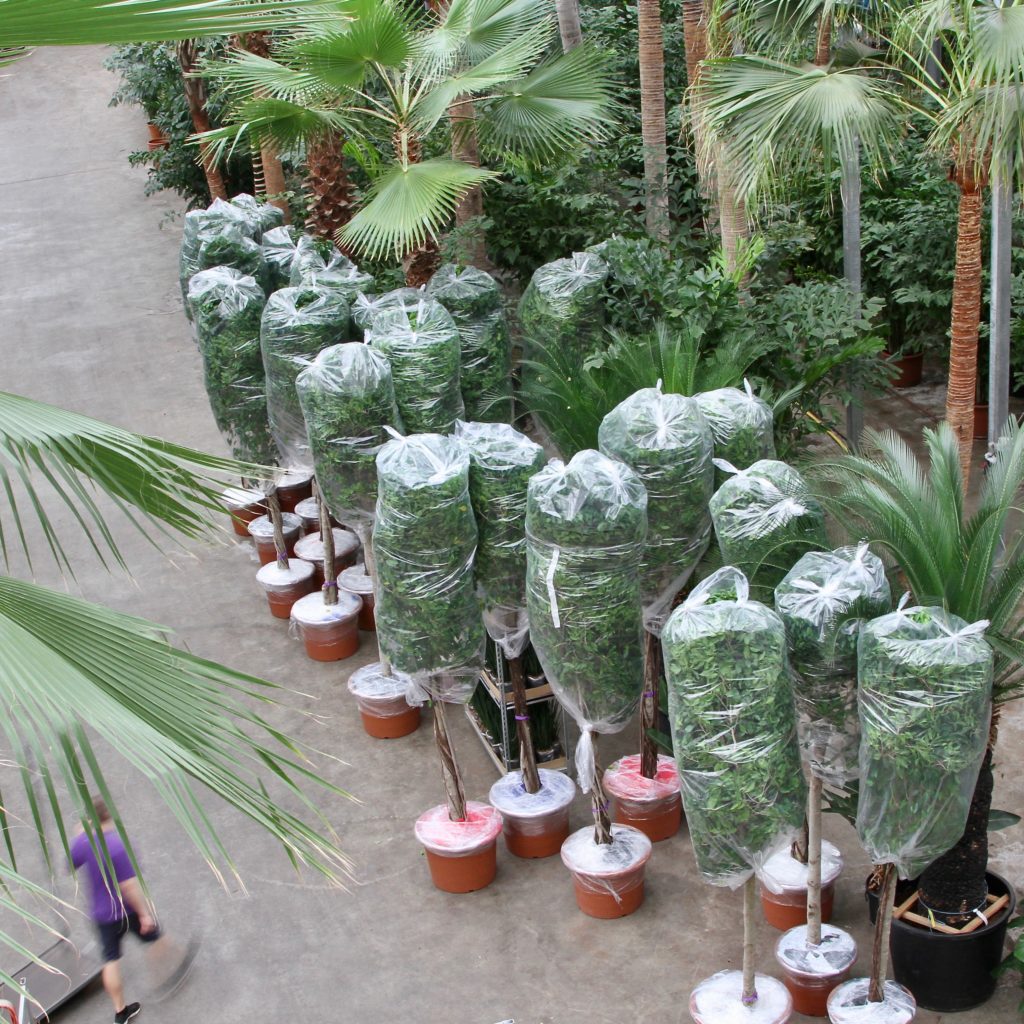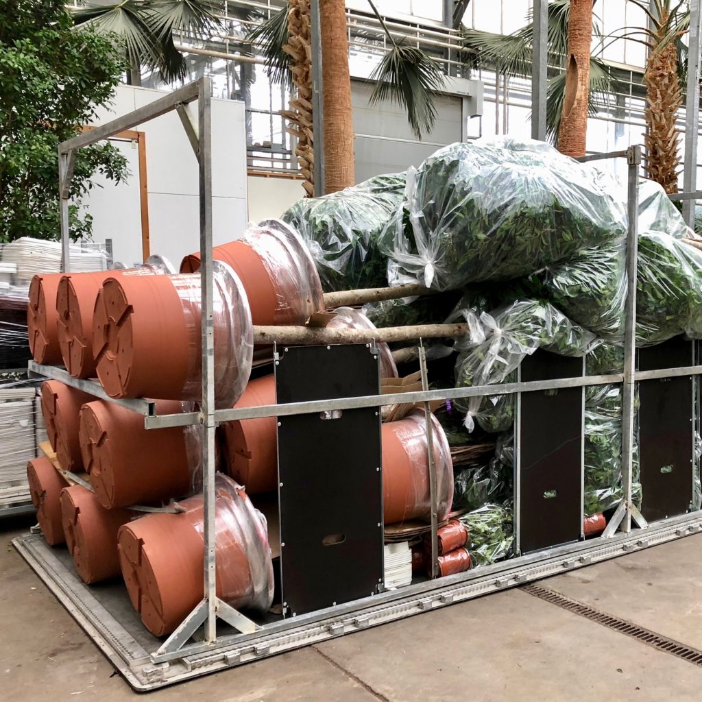 Fachjan a récemment livré ces Ficus. Pas en voiture ou en bateau mais en avion. Nous avons construit un conteneur de fret aérien spécial où les 40 grands Ficus sont transportés.